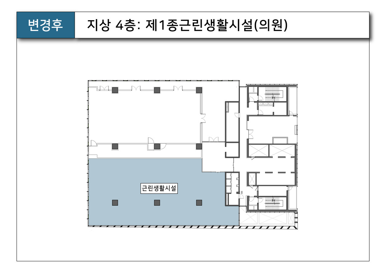 - 허가 : 지상 4층 업무시설(사무소) ▶ 제1종근린생활시설(의원)