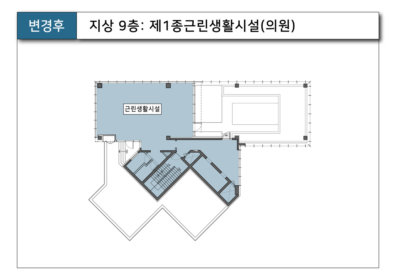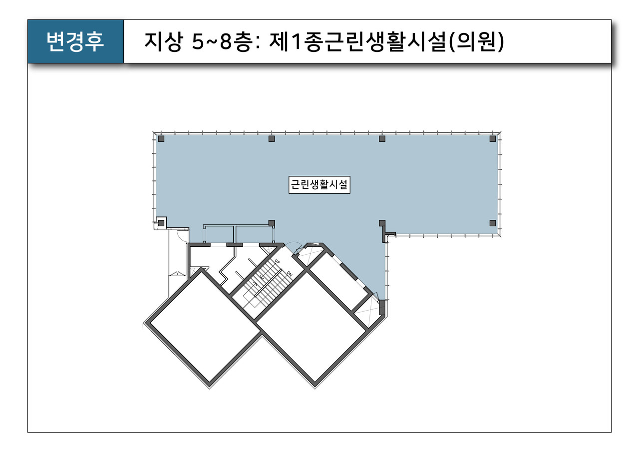 - 허가 : 지상 5~9층 업무시설(사무소) ▶ 제1종근린생활시설(의원)