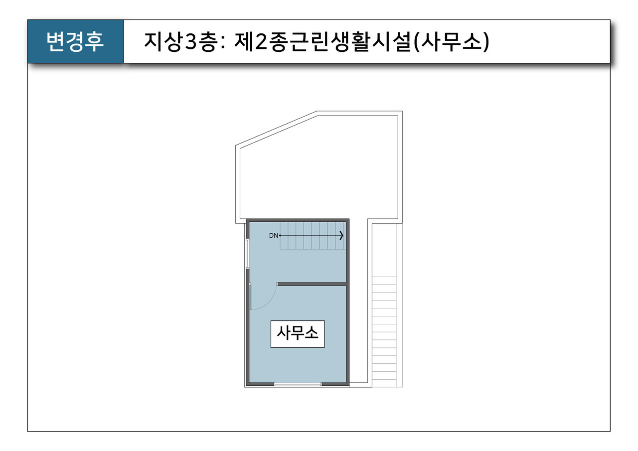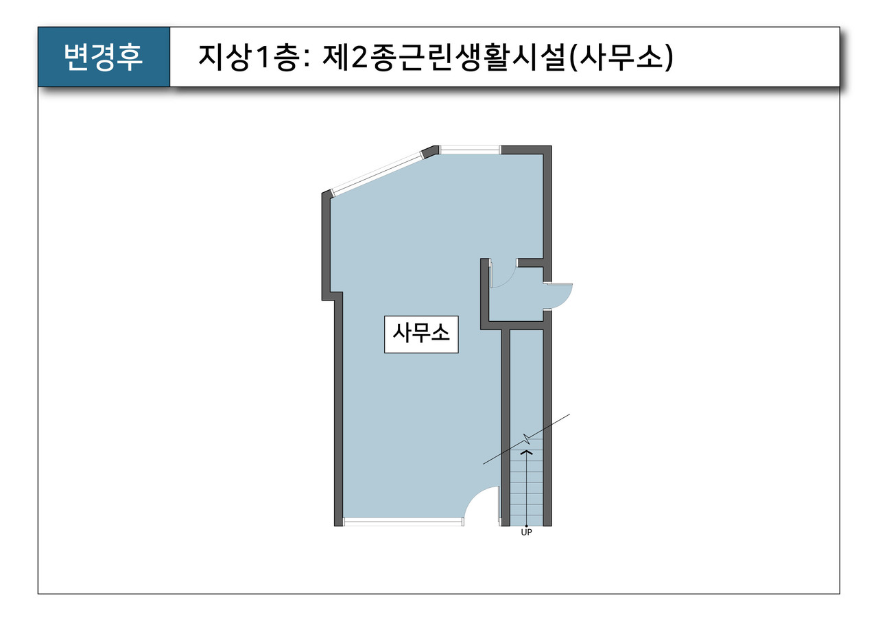 - 용도변경 (허가) : 지상 1층 제2종근린생활시설(일반음식점), 지상2,3층 단독주택 ▶ 제2종근린생활시설(사무소)