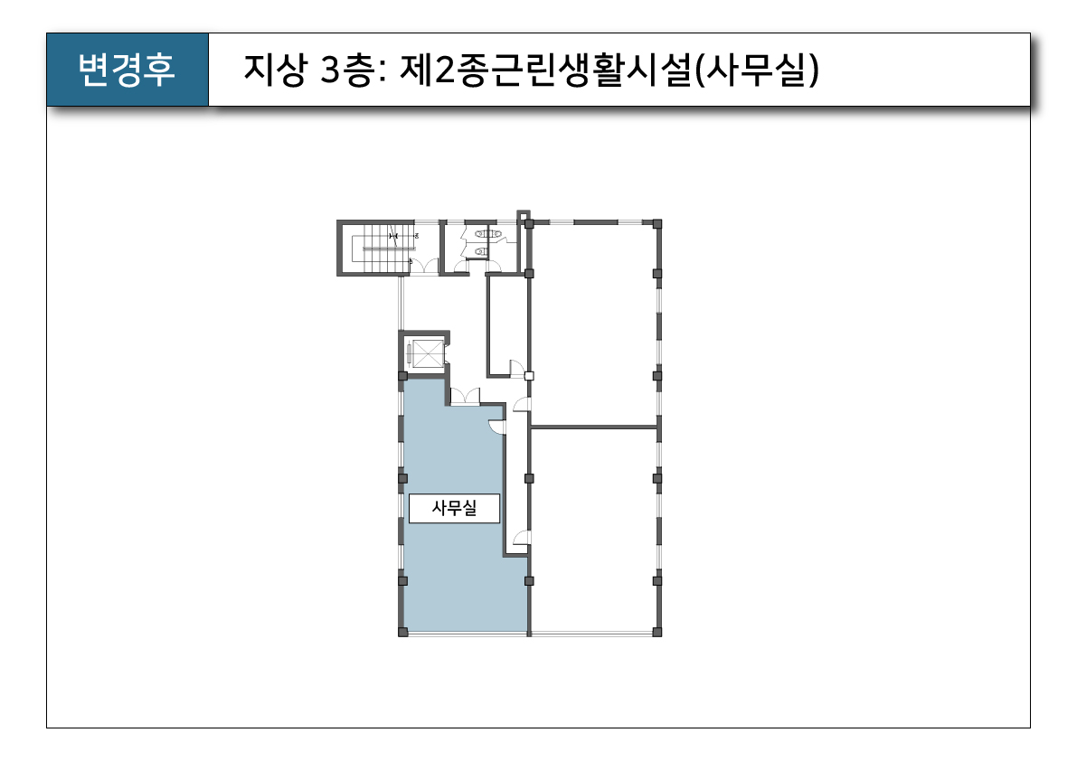 - 표시변경 : 지상 3층 제2종근린생활시설(식당) ▶ 제2종근린생활시설(사무소)